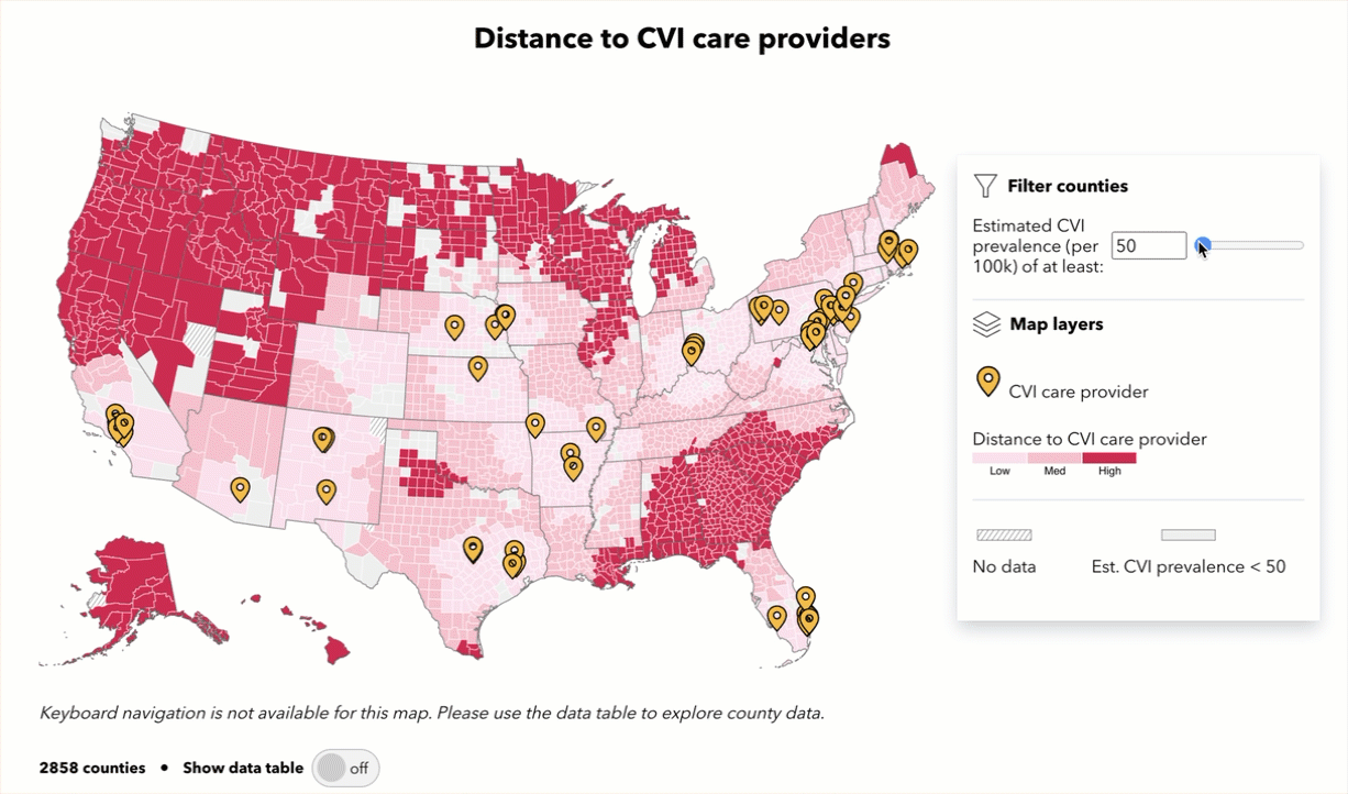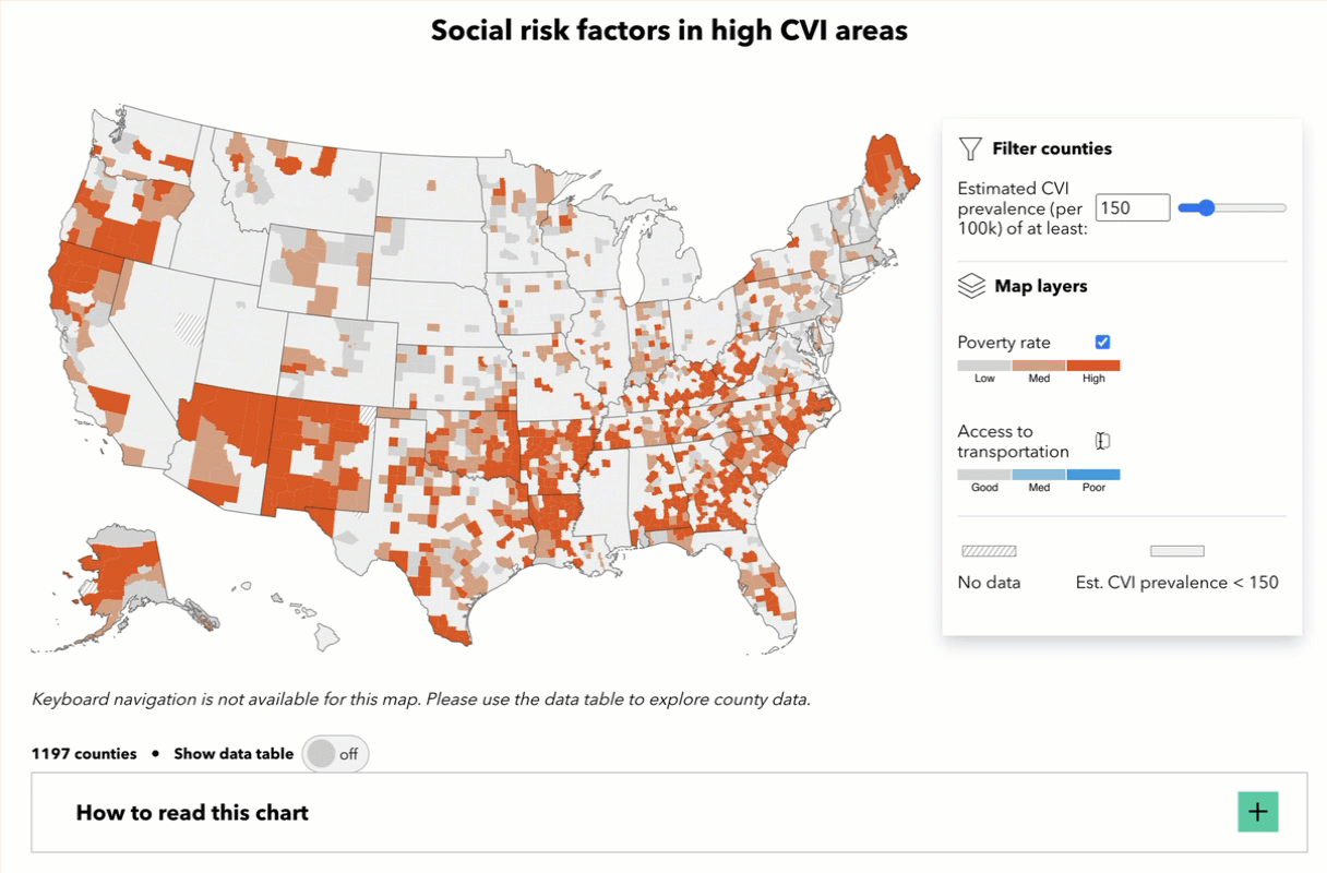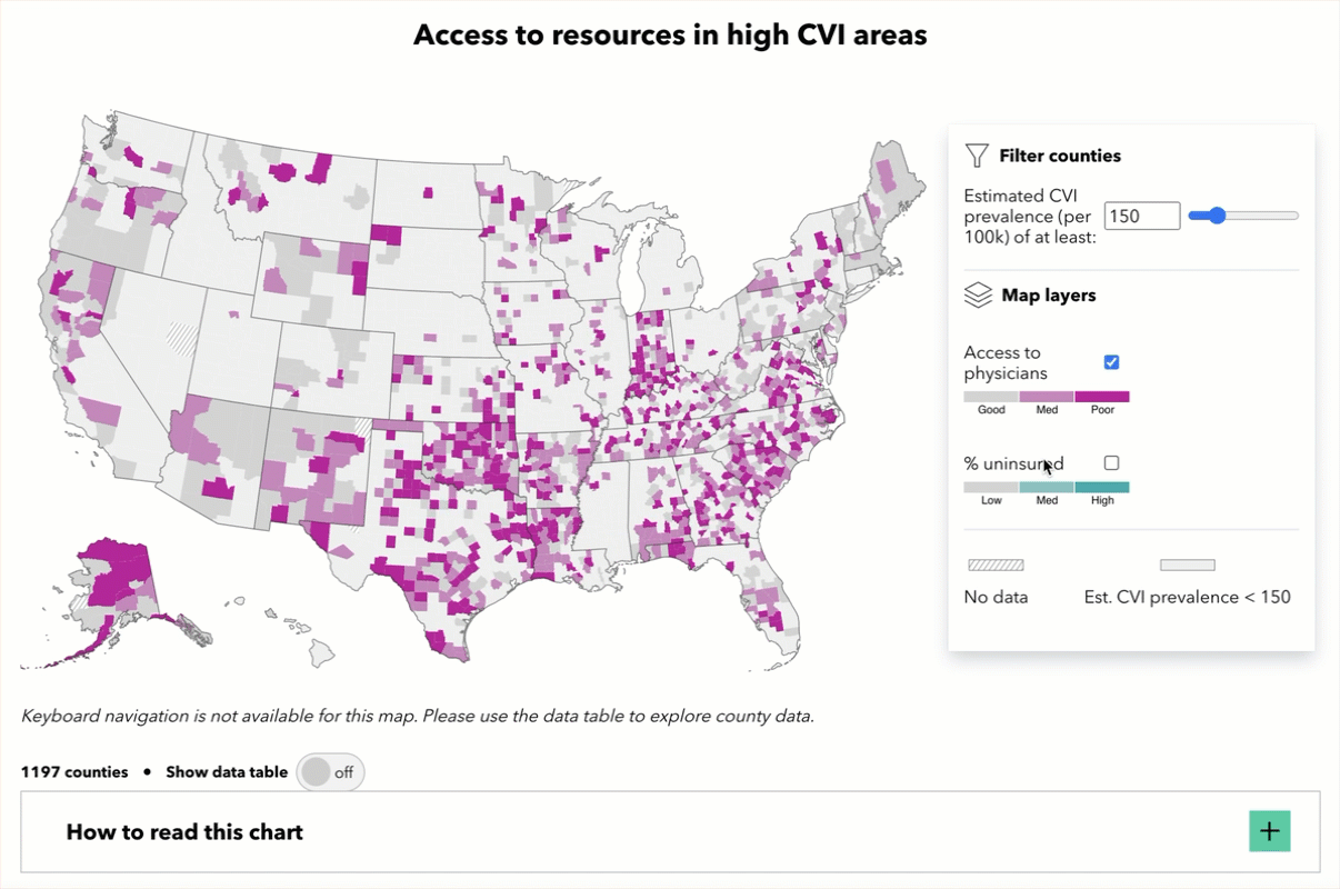 This project shows data for 3,137 counties — presenting this data in an accessible way presented challenges and required thoughtful consideration.