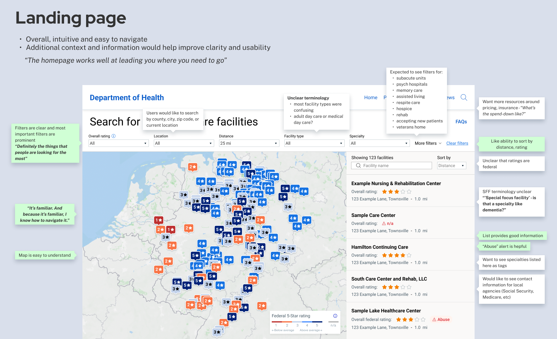 Not enough context and data: Users had to turn to other websites and sources to find all the information they needed about the nursing home