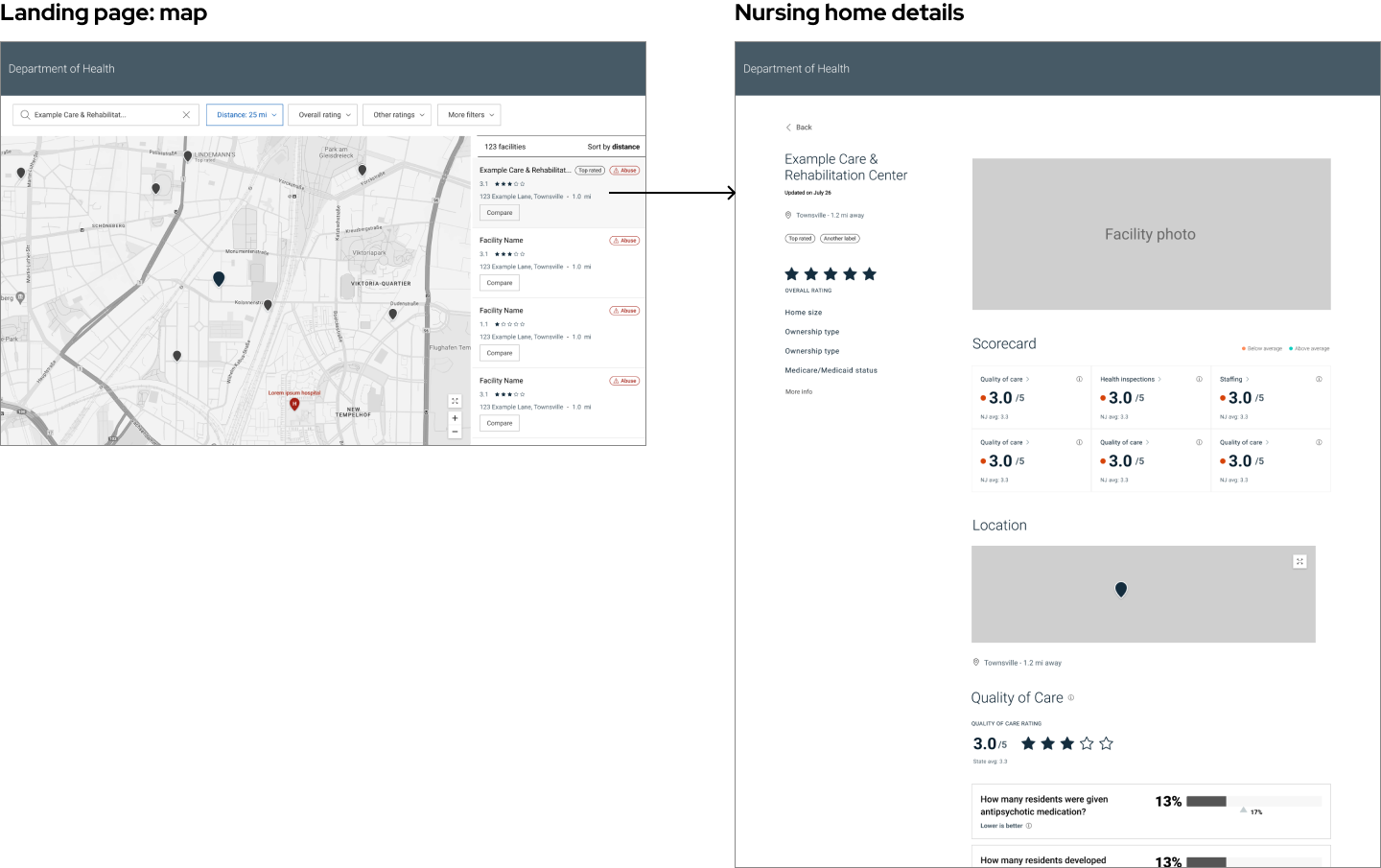 Keep it simple and familiar: Given the often stressful circumstances surrounding nursing home searches, a straightforward and familiar user experience was key